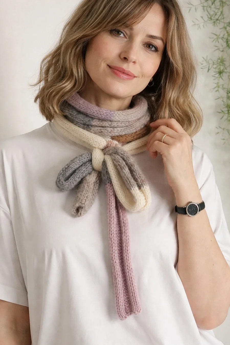 Długi cienki szalik to doskonały dodatek na wiosnę, gdy poranki i wieczory bywają jeszcze chłodne. Wykonany ręcznie na drutach z miękkiej, delikatnej włóczki. Dzięki swojej długości można go nosić na wiele sposobów w zależności od upodobań i wyobraźni. Subtelne połączenie kolorów uzupełni wiosenne stylizacje - do kurtki, płaszcza, swetra, T-shirta.