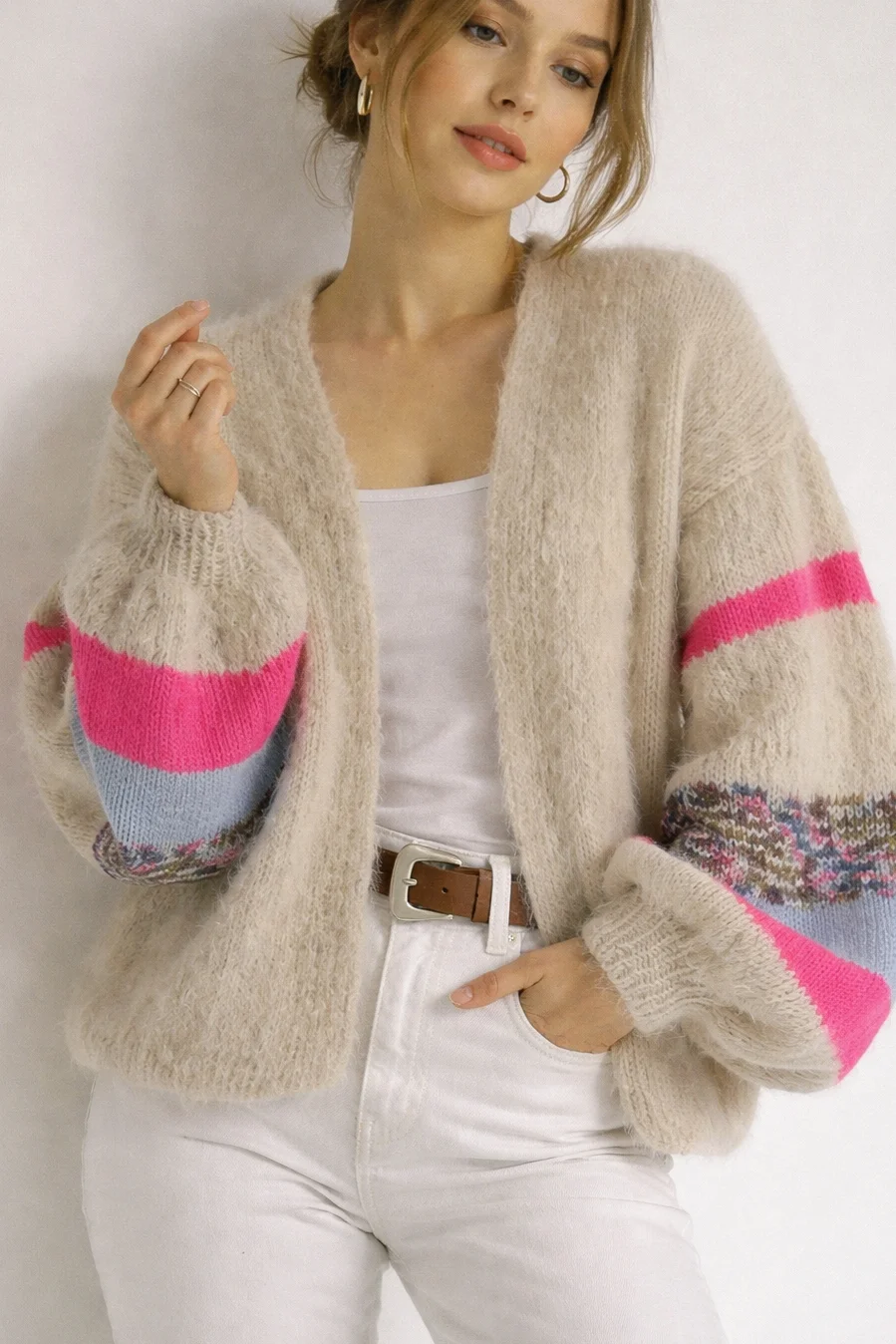 Kardigan w wiosennych kolorach. Zastosowana doskonałej jakości mieszanka przędz daje poczucie luksusu i delikatnego otulenia.