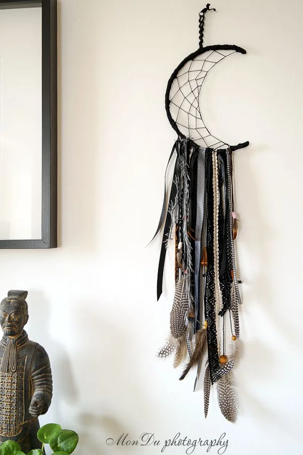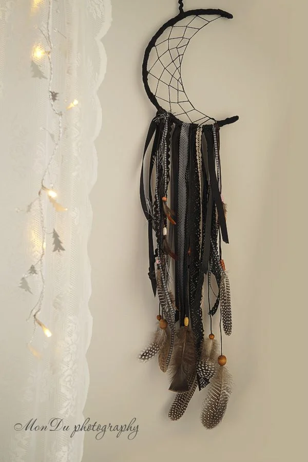 Wprowadź do swojego wnętrza odrobinę tajemnicy i nocnego uroku dzięki wyjątkowemu łapaczowi snów w kształcie księżyca. Utrzymany w eleganckiej, czarnej tonacji, stanowi nie tylko ochronny amulet, ale także stylowy dodatek dekoracyjny, który przyciąga wzrok i nadaje przestrzeni niepowtarzalny charakter.